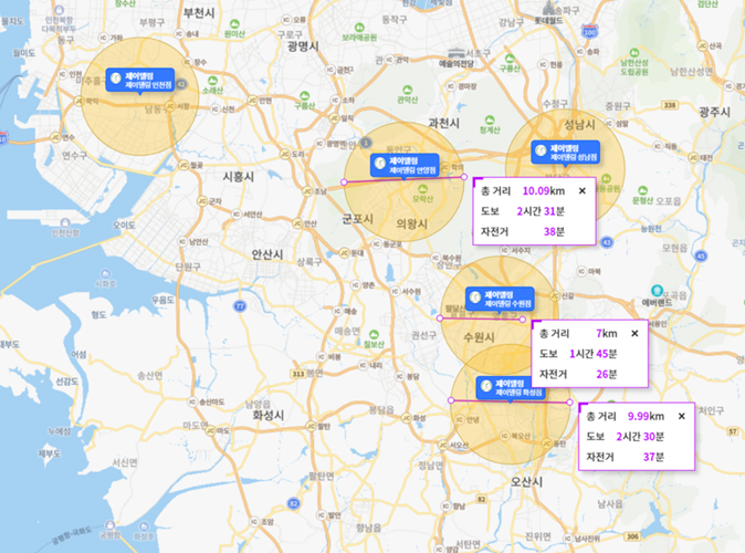 제이델링은 타 프랜차이즈처럼 좁은 반경거리로 동종 브랜드 간의